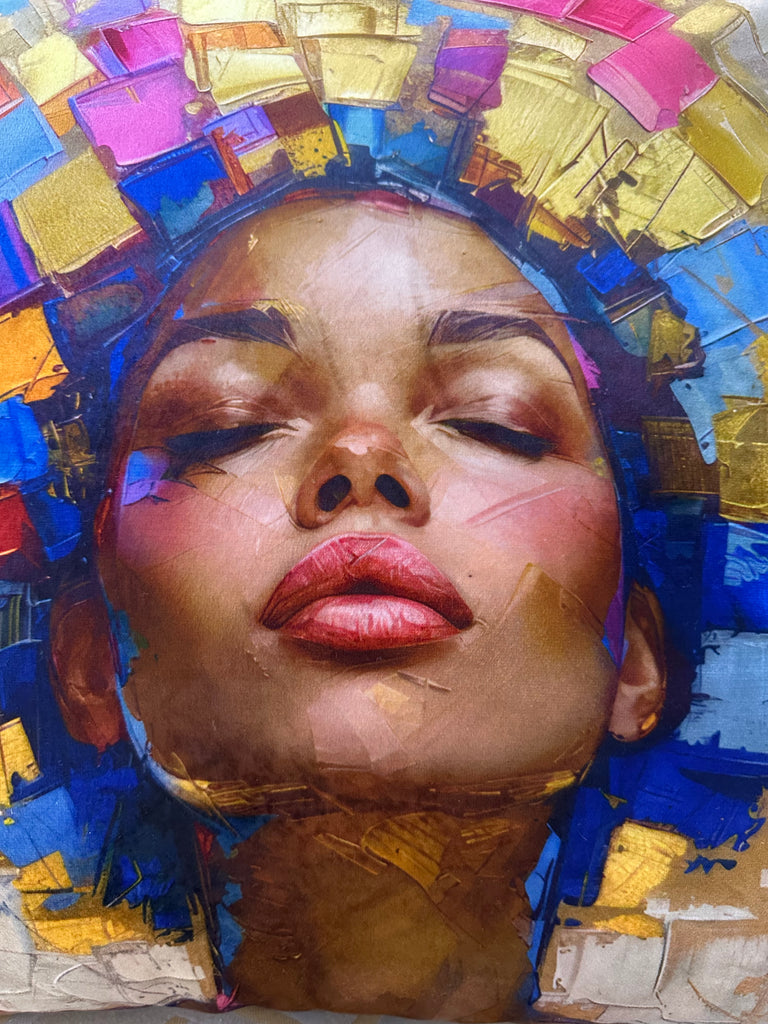 Bring vibrant artistry and bold personality into your home with the Kaleidoscope Queen Scatter Cushion by Mel Designs. This 60x60cm cushion features a striking, colorful kaleidoscope-inspired portrait of a powerful queen, adding energy, culture, and style to any living space.